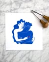 La linogravure est un procédé d'impression manuel. Dans un premier temps on grave une plaque de linoléum ou de gomme qu'on encre à l'aide d'un rouleau avant de presser le papier sur la plaque. Chaque tirage est donc unique. De légères variations de teintes et de matière sont possibles. Tout le charme de la linogravure est là. :)