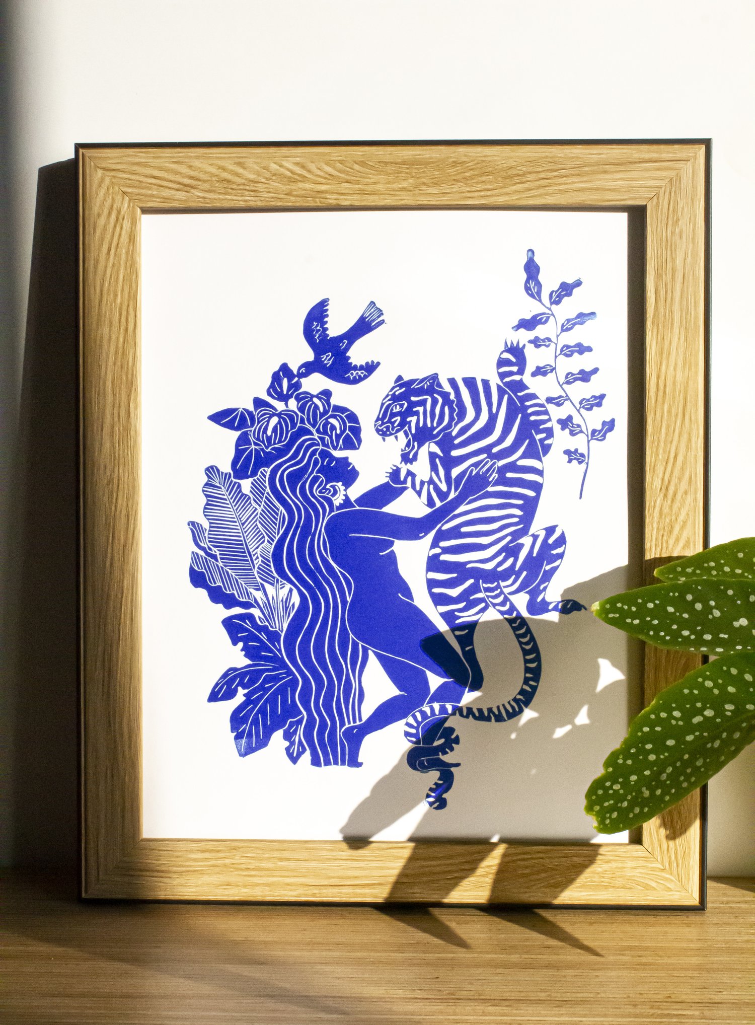 Vous pouvez recevoir votre linogravure déjà encadrée en ajoutant un cadre à votre panier. Une fois offerte, ne reste plus qu'à votre ami.e à l'accrocher.